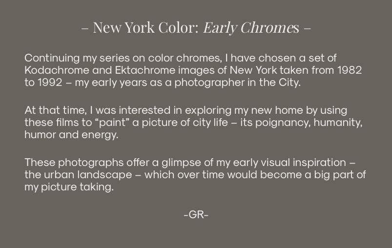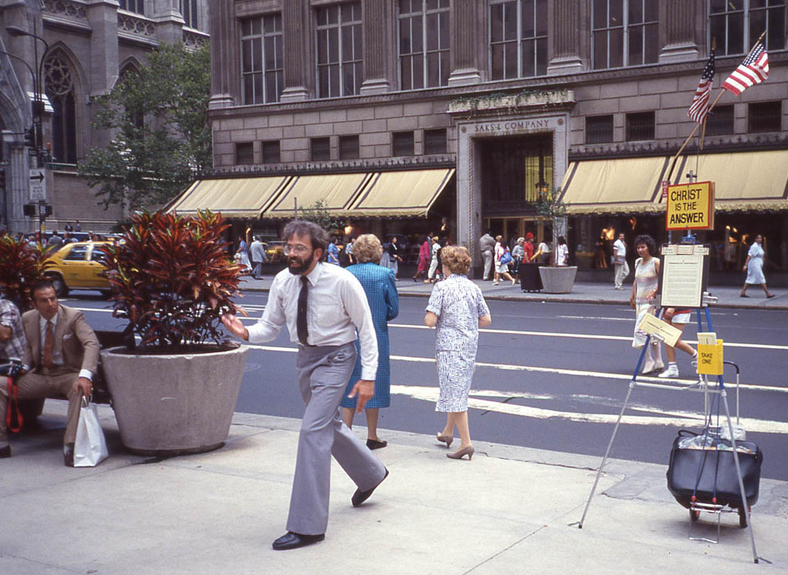 Times Square, New York, 1982Hard Rockers, New York, 1986Preacher, 5th Avenue, New York, 1986Taxis, New York, 1988Baby Dolls, New York, 1983Birdmen, New York, 1983Meeting the Cardboard Candidate, New York, 1988Flashing the Candidates, New York, 1988India Day, New York, 1986India Day Officers, New York, 1986Trash, East Village, New York, 1987Mischief, East Village, New York, 1987Statue of Liberty Centennial, New York, 1986St. Theresa, Little Italy, New York, 1982Bird Lady, New York, 1992Warm-up, Central Park, New York, 1992From My Window, #1, New York, 1992From My Window #2, New York, 1992